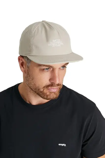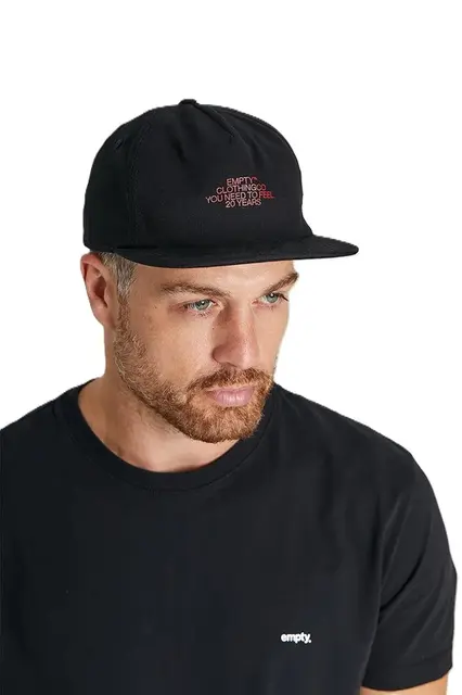 O modelo snapback desestruturado traz um caimento mais leve e descontraído, enquanto o detalhe da estampa "20 anos" marca a edição especial comemorativa da marca Empty — perfeita para quem acompanha essa história desde o começo ou acaba de chegar.