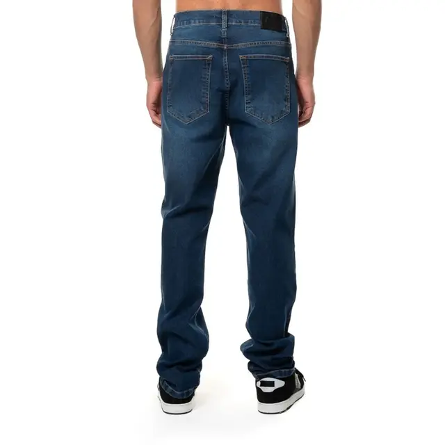 Com lavagem e detalhes destroyed, a peça traz um visual autêntico e urbano. Possui modelagem slim fit, bolsos frontais embutidos, bolso isqueiro e bolsos traseiros com o icônico detalhe em forma de espada, marca registrada da MCD.