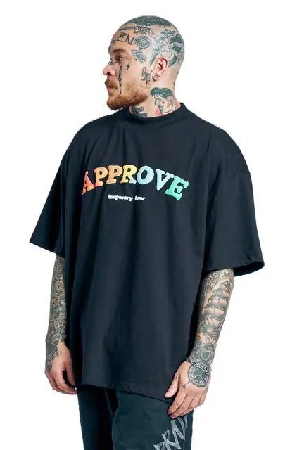 Arte exclusiva APPROVE aplicada na parte frontal em técnica de silkscreen puff, adicionando textura e destaque ao visual.