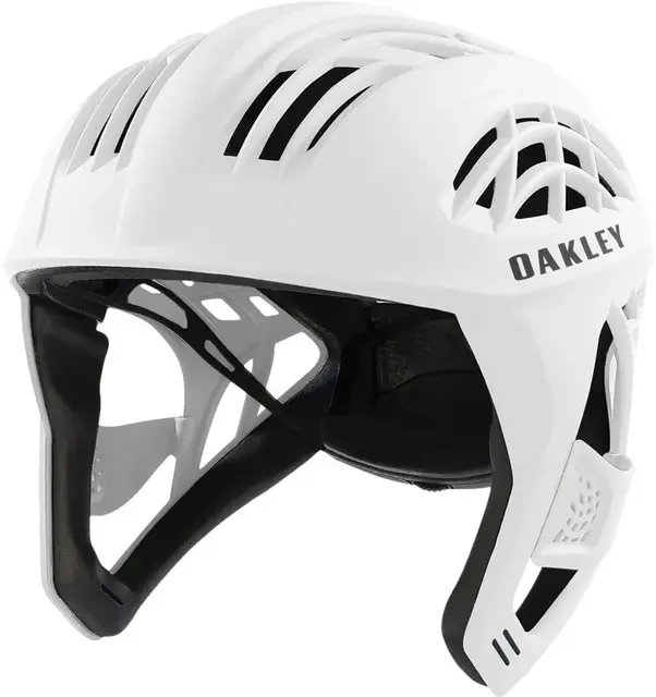 A proteção de orelha é ajustável e removível, desenvolvida para não comprometer a audição, mantendo a percepção do ambiente e protegendo contra impactos e lesões. A estrutura leve com enchimento de densidade dupla oferece conforto superior, enquanto o sistema Oakley 360 Fit proporciona ajuste preciso e seguro, adaptando-se perfeitamente à cabeça.