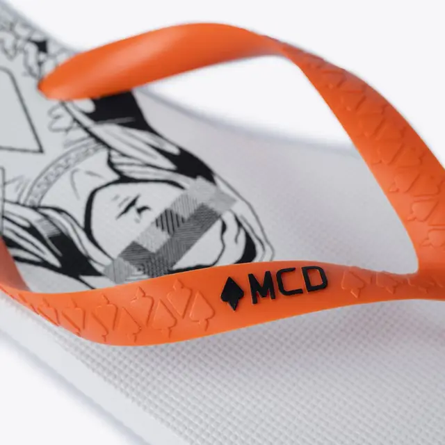 Estampa Ousada: A principal característica do chinelo é a sua estampa Logo MCD Santa, que provavelmente traz um visual com a figura da santa com o logo censurado, refletindo a irreverência e a atitude subversiva da marca.