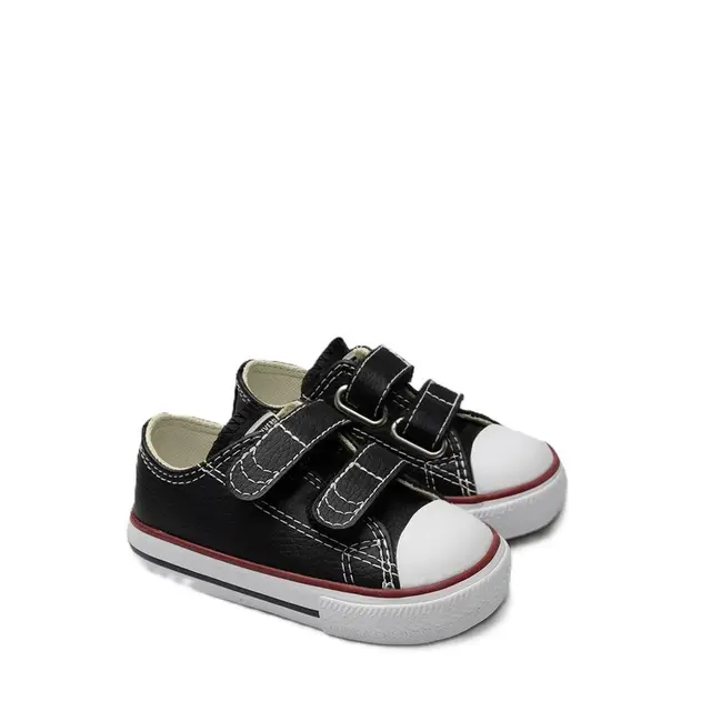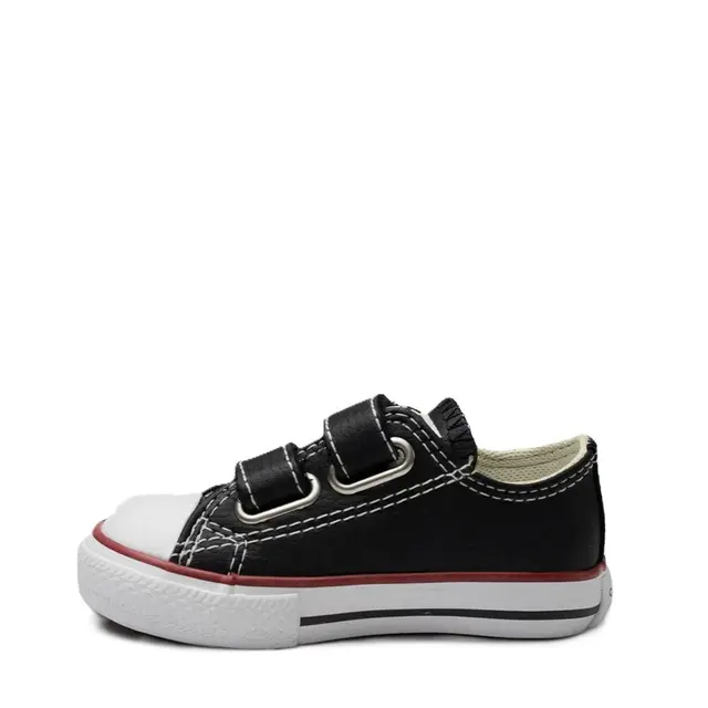 Com cabedal em couro sintético preto, entressola branca e detalhe em listra vermelha, este modelo entrega personalidade e resistência para acompanhar todas as aventuras infantis. As duas tiras de velcro substituem os cadarços tradicionais, oferecendo um ajuste prático, rápido e seguro — ideal para crianças que estão sempre em movimento.