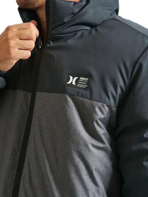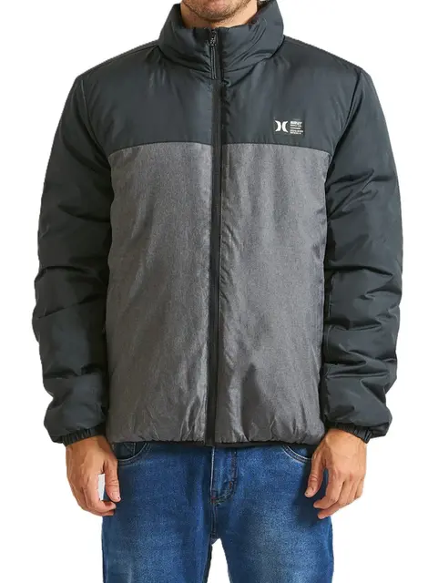 Seu design sem capuz, com gola alta e zíper frontal até o topo, garante um visual clean e proteção extra contra o vento. Os recortes frontais e traseiros adicionam modernidade ao visual, enquanto o patch frontal bordado com o logotipo da Hurley reforça a originalidade da peça.