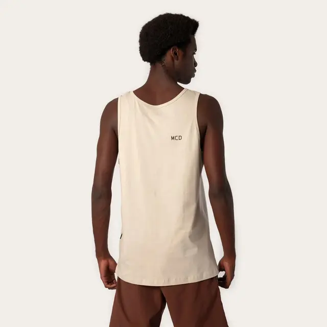 Detalhes de Marca no Verso: As costas da regata exibem a estampa MCD, reforçando a autenticidade da peça, enquanto a etiqueta "More Core Division" aplicada na lateral e a tag personalizada MCD certificam a originalidade.