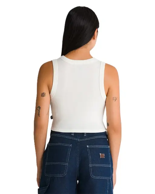 A Regata Vans Drew Rib Tank combina conforto e estilo em um design clássico. Confeccionada em tecido canelado de alta qualidade, essa regata proporciona um ajuste perfeito ao corpo, sendo ideal para dias quentes ou para compor looks casuais e despojados. A peça apresenta um acabamento minimalista com a icônica assinatura Vans discreta, reforçando a herança da marca em oferecer peças autênticas e versáteis.