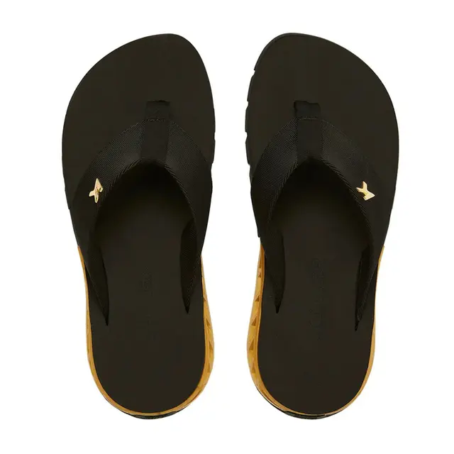 O cabedal preto da sandália é equipado com a tecnologia Hydro-Off, que repele a água, mantendo os seus pés secos mesmo em condições mais úmidas. A palmilha extramacia na cor preta proporciona o máximo de conforto, enquanto a peça Re.Amp amplificadora dourada garante a elevação suave de cada pisada, trazendo um toque de sofisticação e performance.