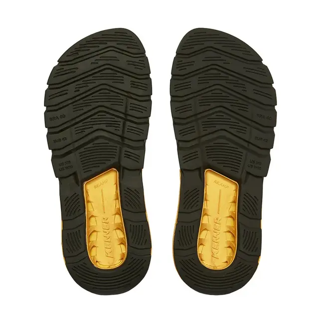O identificador lateral com K metálico dourado adiciona um toque de luxo e exclusividade ao design, enquanto o solado megatratorado de borracha vulcanizada na cor preta oferece segurança e aderência, tornando a sandália ideal para quem busca estabilidade e estilo, seja para o dia a dia ou para aventuras mais intensas.