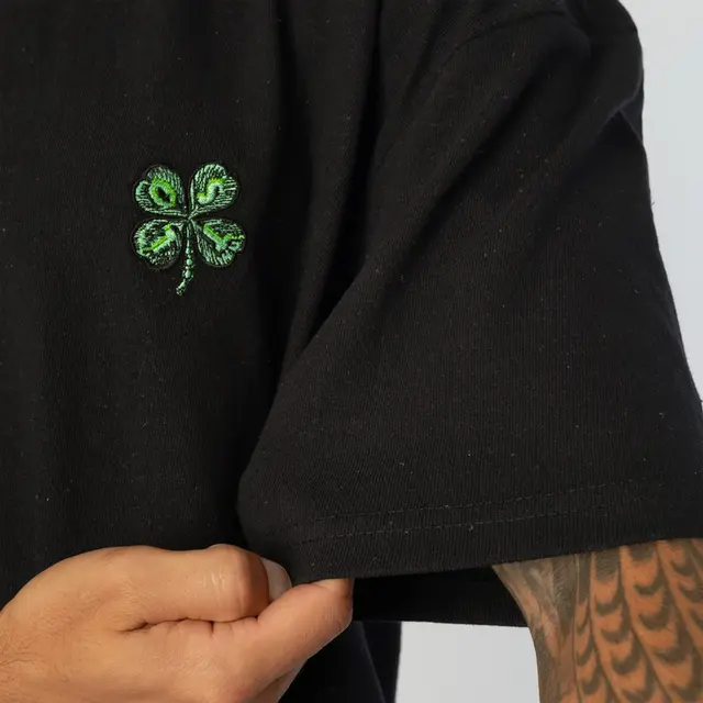 Detalhes Exclusivos: A camiseta se destaca pelos seus detalhes sutis e autênticos. O bordado de trevo localizado no peito lateral e a etiqueta bandeira embutida na lateral dão um toque de exclusividade.
