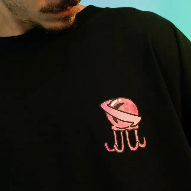 Gráfico exclusivo desta collab, misturando elementos cósmicos e marinhos. Conforto 100% Algodão com caimento Box Fit. Edição limitada!