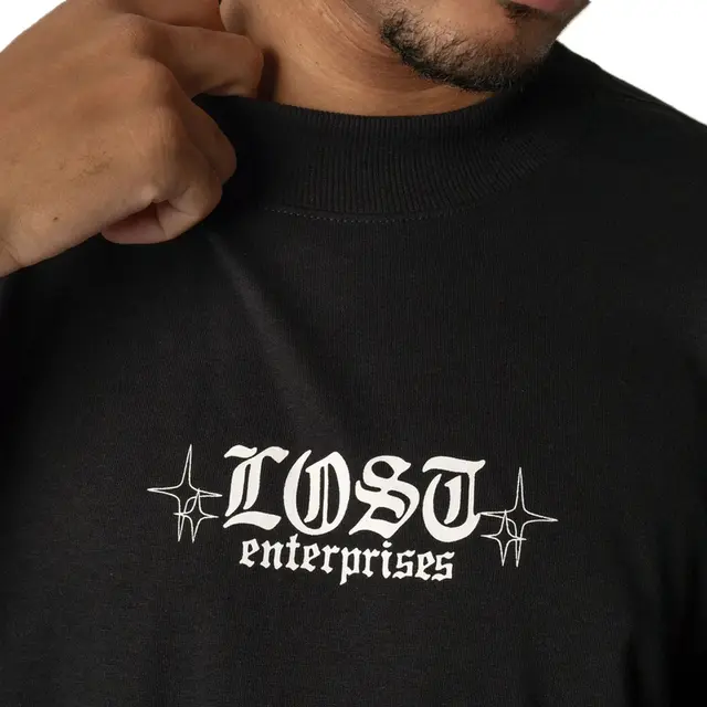 Com modelagem box fit, garante liberdade de movimento e visual moderno. O design traz estampa frontal Lost Enterprises no peito, estampa grande nas costas e detalhes exclusivos como reforço de gola, etiqueta bandeira lateral e tag personalizada Lost, evidenciando a identidade icônica da marca.
