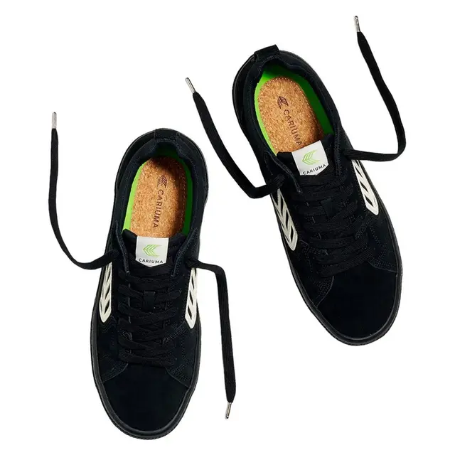 Palmilha: Produzida com óleo de mamona e inserção de cortiça de base biológica, com o logo CARIUMA – conforto sustentável em cada passo.