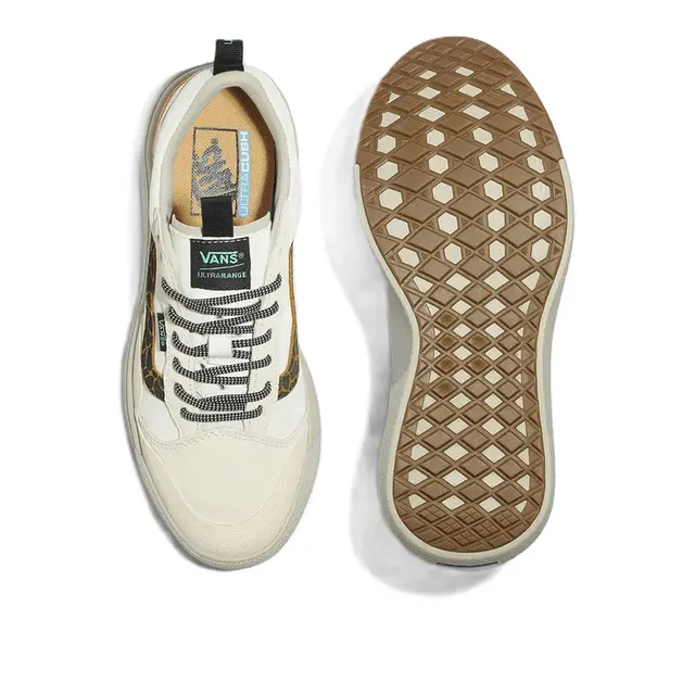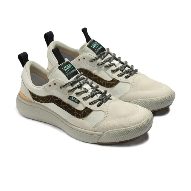 Conforto incomparável e performance para todas as situações. Esteja preparado para qualquer imprevisto com o Tênis UltraRange Exo Se Giraffe White Multi. Seu solado co-moldado, com o icônico padrão tratorado em waffle da Vans, proporciona cobertura extra, aderência superior e durabilidade. A entressola UltraCush™ Lite garante conforto leve, ideal para longas caminhadas ou atividades intensas. Com design de cano baixo e inspiração no lendário Old Skool, o modelo mistura camurça, tecido e materiais sintéticos, com uma ousada estampa animal print de girafa que confere um toque único. A estrutura de borracha renovada na biqueira e antepé melhora o ajuste e o conforto, enquanto o Exo Skeleton oferece suporte preciso nos dedos e nas laterais. A trava de calcanhar proporciona um encaixe seguro, enquanto os puxadores na lingueta e no calcanhar tornam o calce mais prático. O logo "Vans Off The Wall" é discretamente aplicado na heeltab, e a assinatura "Vans Ultrarange" adorna a lingueta.