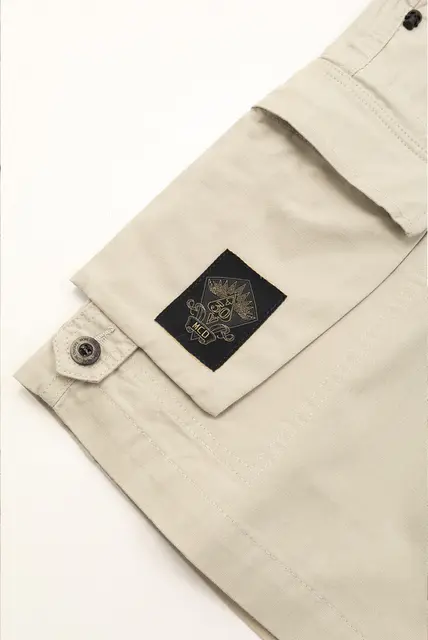 Bolsos Estratégicos: Conta com bolsos faca embutidos para praticidade e um bolso traseiro embutido com fechamento em velcro, garantindo segurança para seus pertences. A etiqueta externa costurada no bolso lateral reforça a atenção aos detalhes.